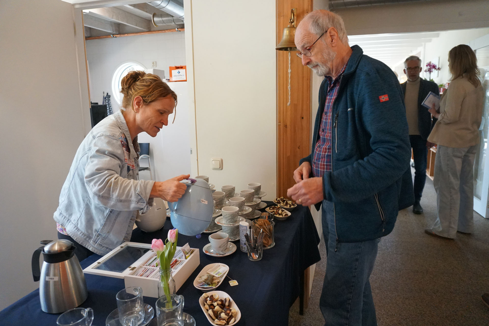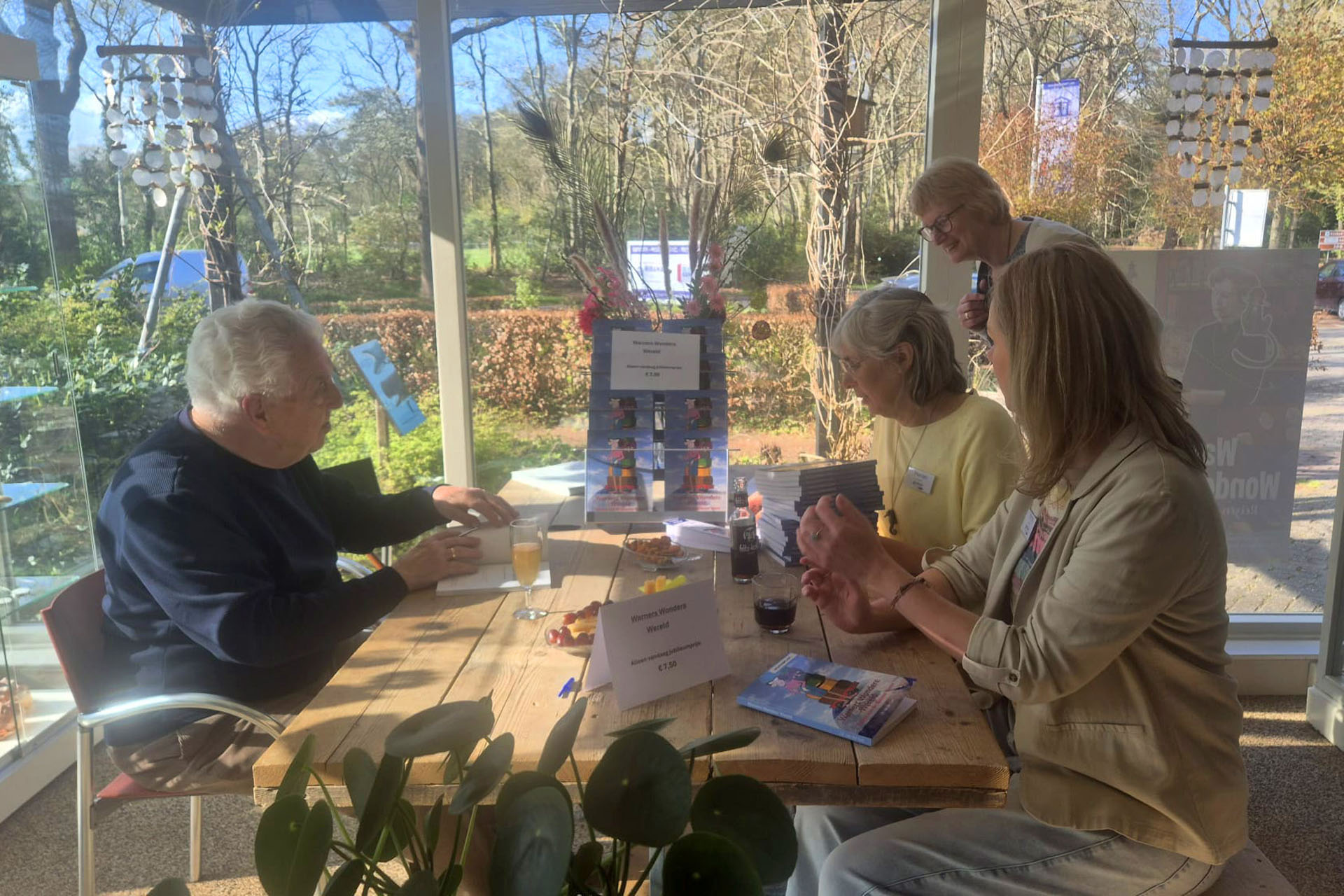 Na het openingswoord door Emmy Westmaas, museummanager van Miramar, kwam Joop van der Tuin aan het woord. Joop is de schrijver van het boek ‘De Blauwe Dame’, over leven en werk van mej. Warners. Joop en zijn vrouw hebben haar persoonlijk gekend en mooie verhalen gedeeld. Met de opening is ook de herdruk van het boekje gepresenteerd; hetzelfde verhaal met aanvullingen vanuit een nieuw, hedendaags perspectief. Na afloop heeft Joop op veler verzoek boekjes gesigneerd.